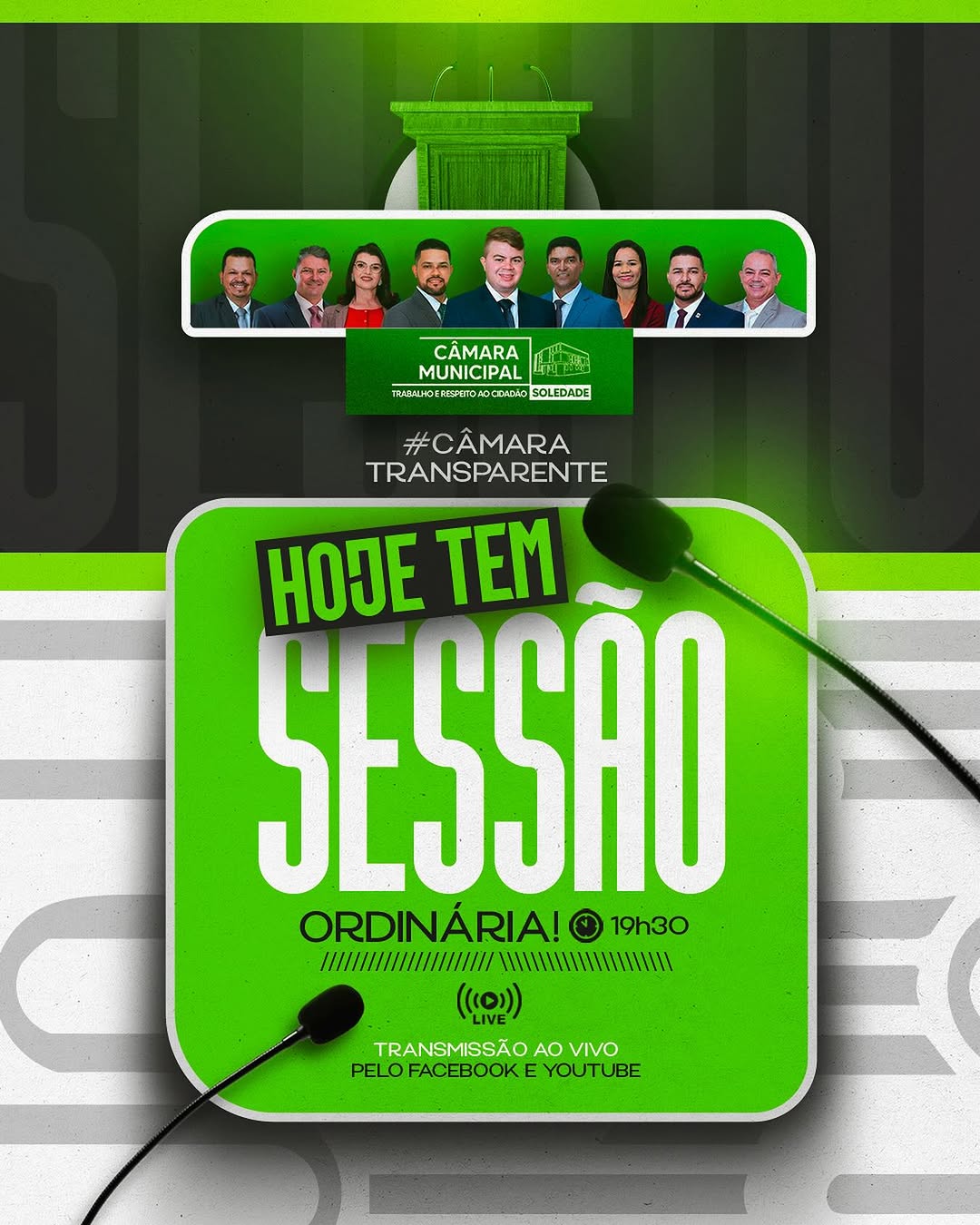 A Câmara Municipal de Soledade convida toda a população para acompanhar a Sessão Ordinária que será realizada hoje. O encontro é um momento fundamental para a dinâmica legislativa, buscando promover o diálogo e a construção coletiva de soluções que impulsionem o desenvolvimento do município.